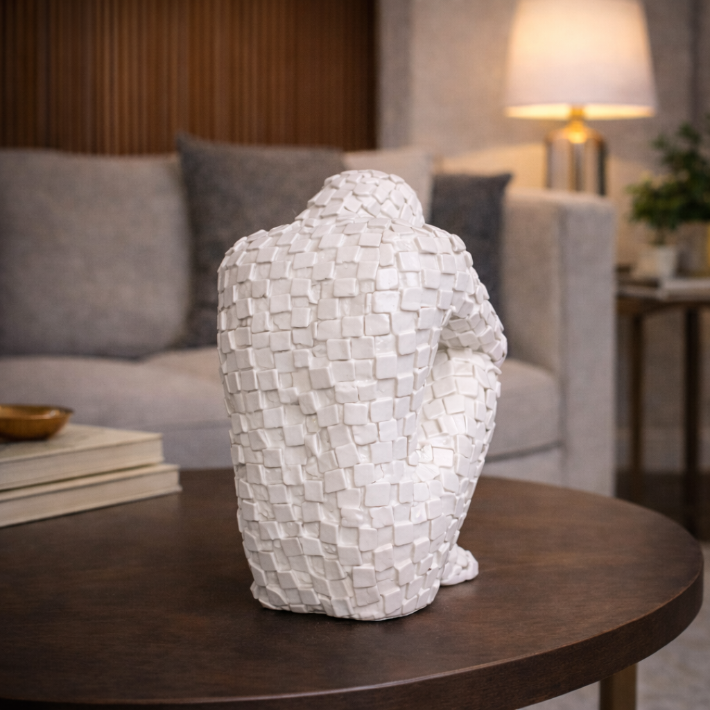 Elevate your interior with refined elegance and artistic expression through the Luxury White Mosaic Thinking Man Abstract Statue by EnamorarDecor. Designed to symbolize wisdom, mindfulness, and deep contemplation, this premium décor piece beautifully blends modern abstract art with a clean, sophisticated aesthetic.