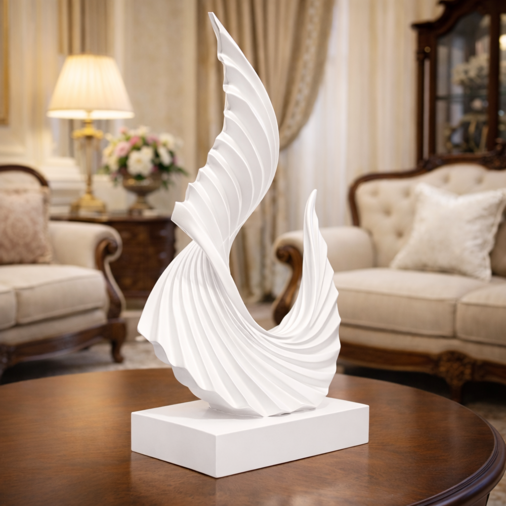 The graceful twisted silhouette symbolizes harmony, continuity, and artistic movement, making it more than just a decor piece—it is a statement of refined taste. Finished in a pristine matte white tone, the sculpture radiates calmness, luxury, and modern elegance. Its smooth curves and layered spiral detailing create a mesmerizing visual effect that changes beautifully from every angle.